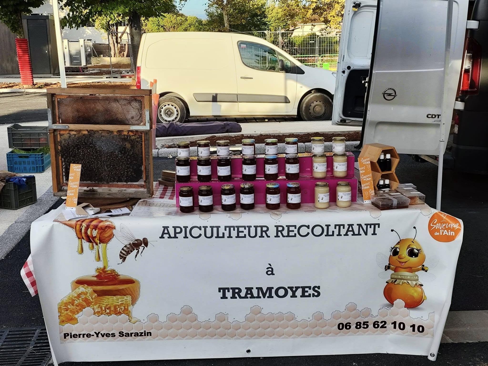 Miels Pierre-Yves Sarazin est un apiculteur installé à Tramoyes. Il produit des miels locaux, récoltés avec soin et dans le respect des abeilles. Les miels sont extraits et mis en pot localement, afin de proposer des produits authentiques, représentatifs de la flore du secteur.